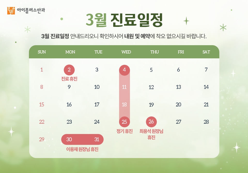 - ※ 수요일, 일요일 및 공휴일 휴진입니다.