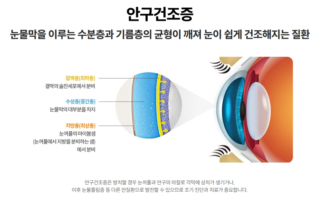 렌즈는 눈 표면의 눈물층을 불안정하게 만들어 건조감을 유발할 수 있습니다.