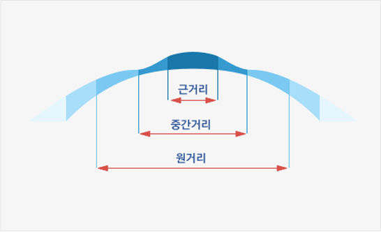 작은 글씨를 볼 때 거리가 갈수록 멀어진다.